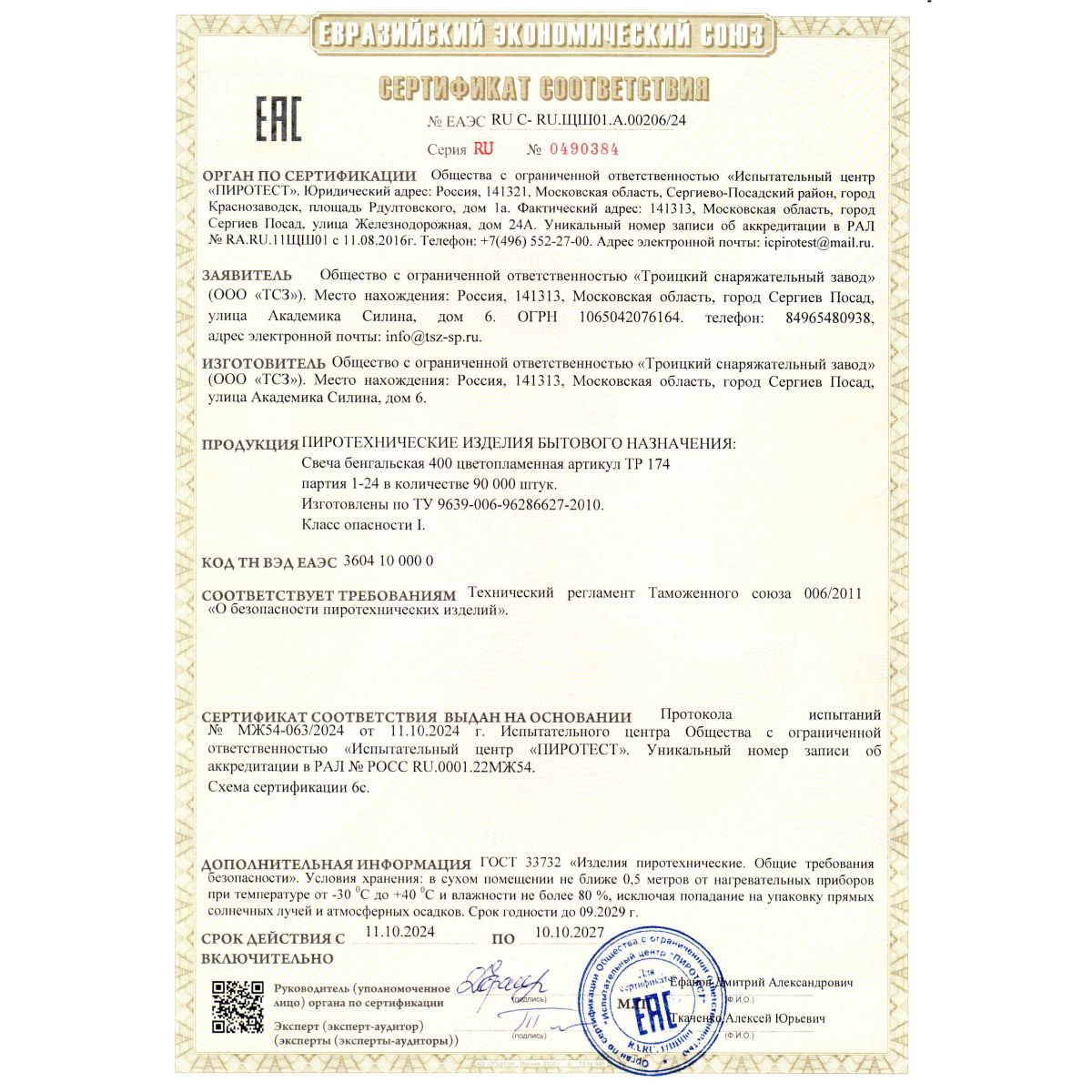 Ракеты имеют Сертификат соответствия качества ЕАС